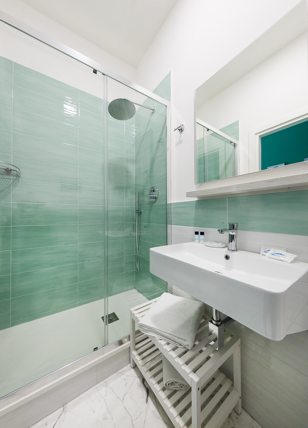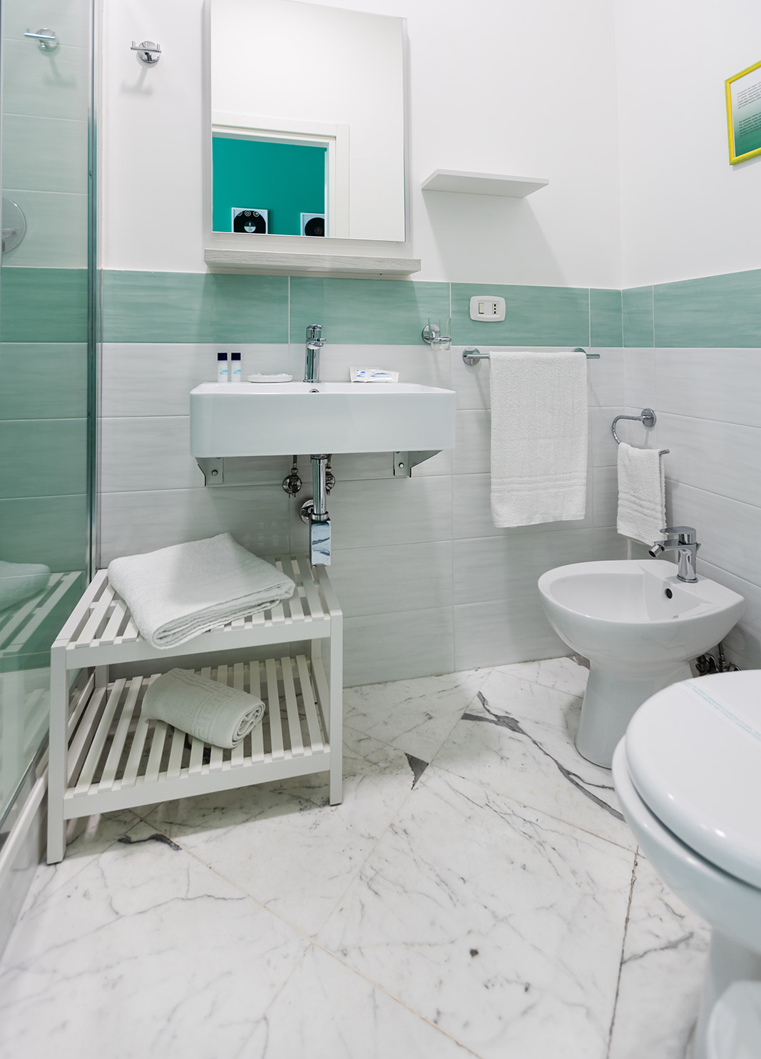 Camera matrimoniale con affaccio sul rigoglioso giardino condominiale, dotata di letto matrimoniale, tv a schermo piatto, bagno in camera, riscaldamento ed aria condizionata.